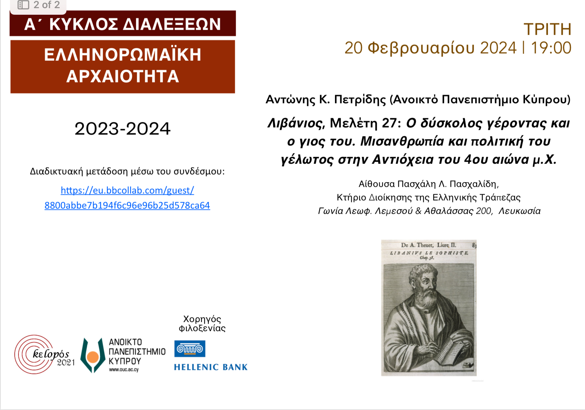Για το βιβλίο μίλησαν ο διευθυντής του ΚΕΛΟΠΟΣ δρ Κωστής Παύλου και η φιλόλογος δρ Έλενα Ματσάγγου. Σύντομη παρέμβαση έκανε ο εικαστικός Σταύρος Κίκας. Ποιήματα από τη συλλογή διάβασε ο ίδιος ο ποιητής.