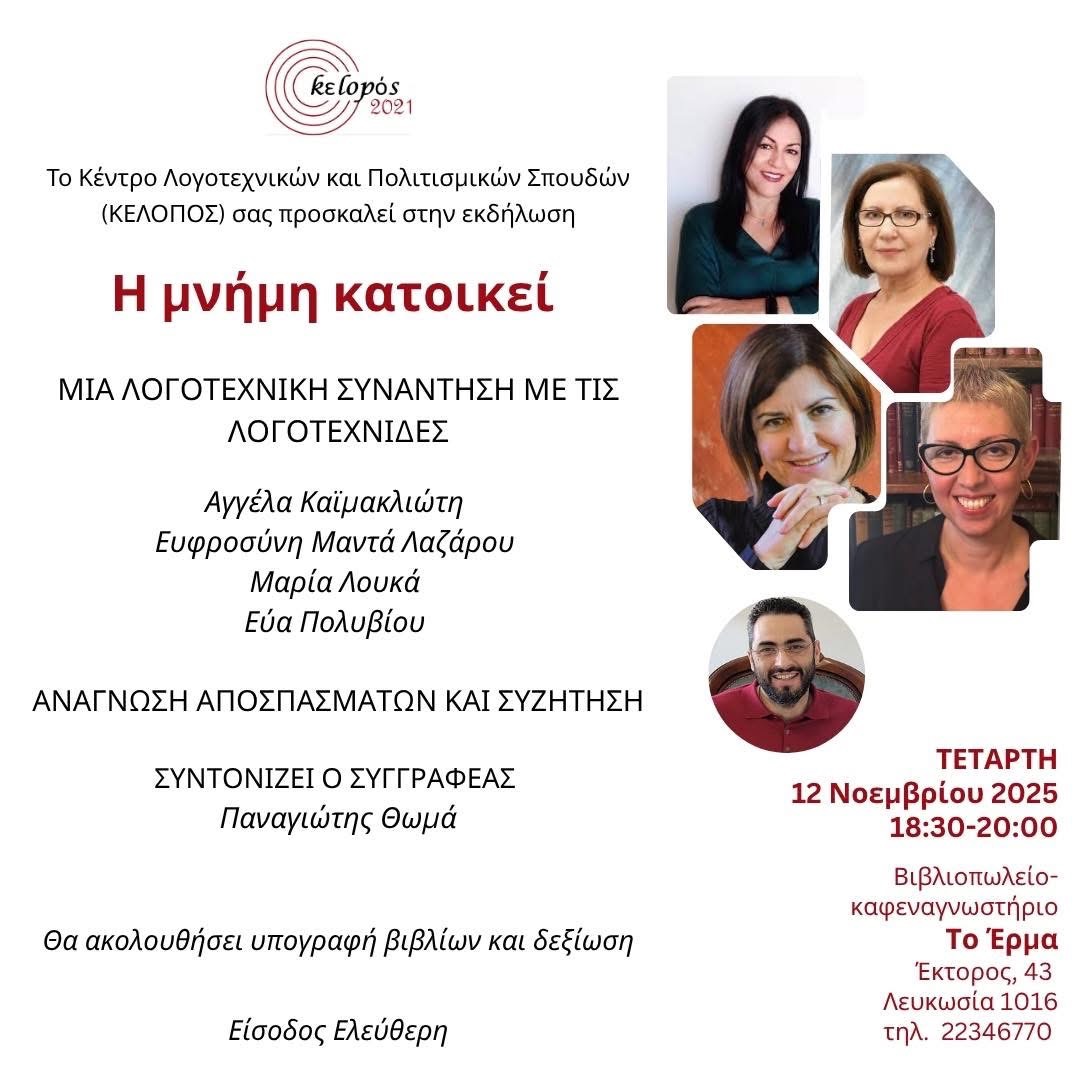 Την Τετάρτη, 24 Σεπτεμβρίου 2025, πραγματοποιήθηκε στη Λευκωσία, στον χώρο του Βιβλιοπωλείου-καφεαναγνωστηρίου Το έρμα, η παρουσίαση της νέας ποιητικής συλλογής του Παναγιώτη Νικολαΐδη, Γράμματα στην αγαπημένη (Σμίλη, 2025).
